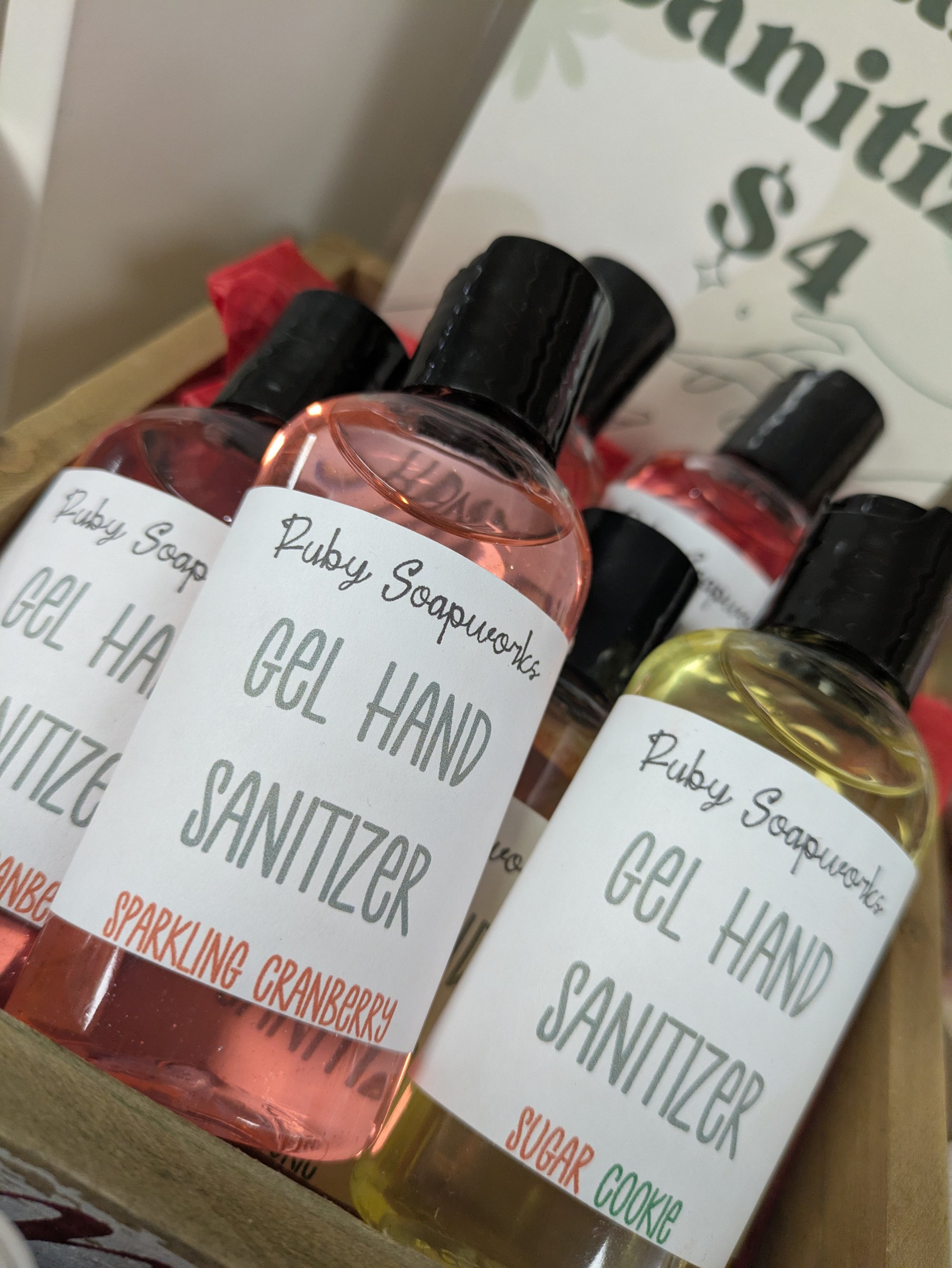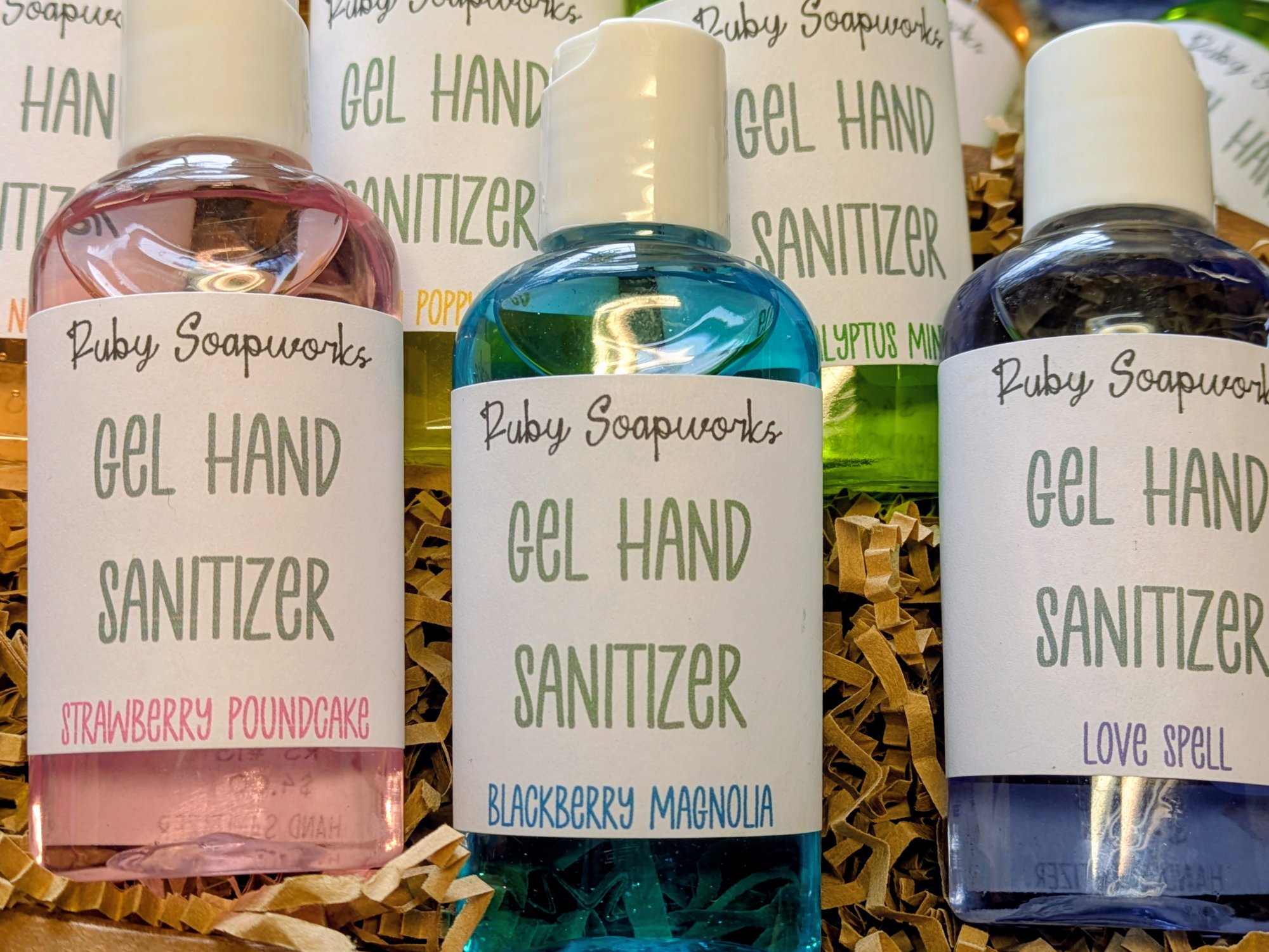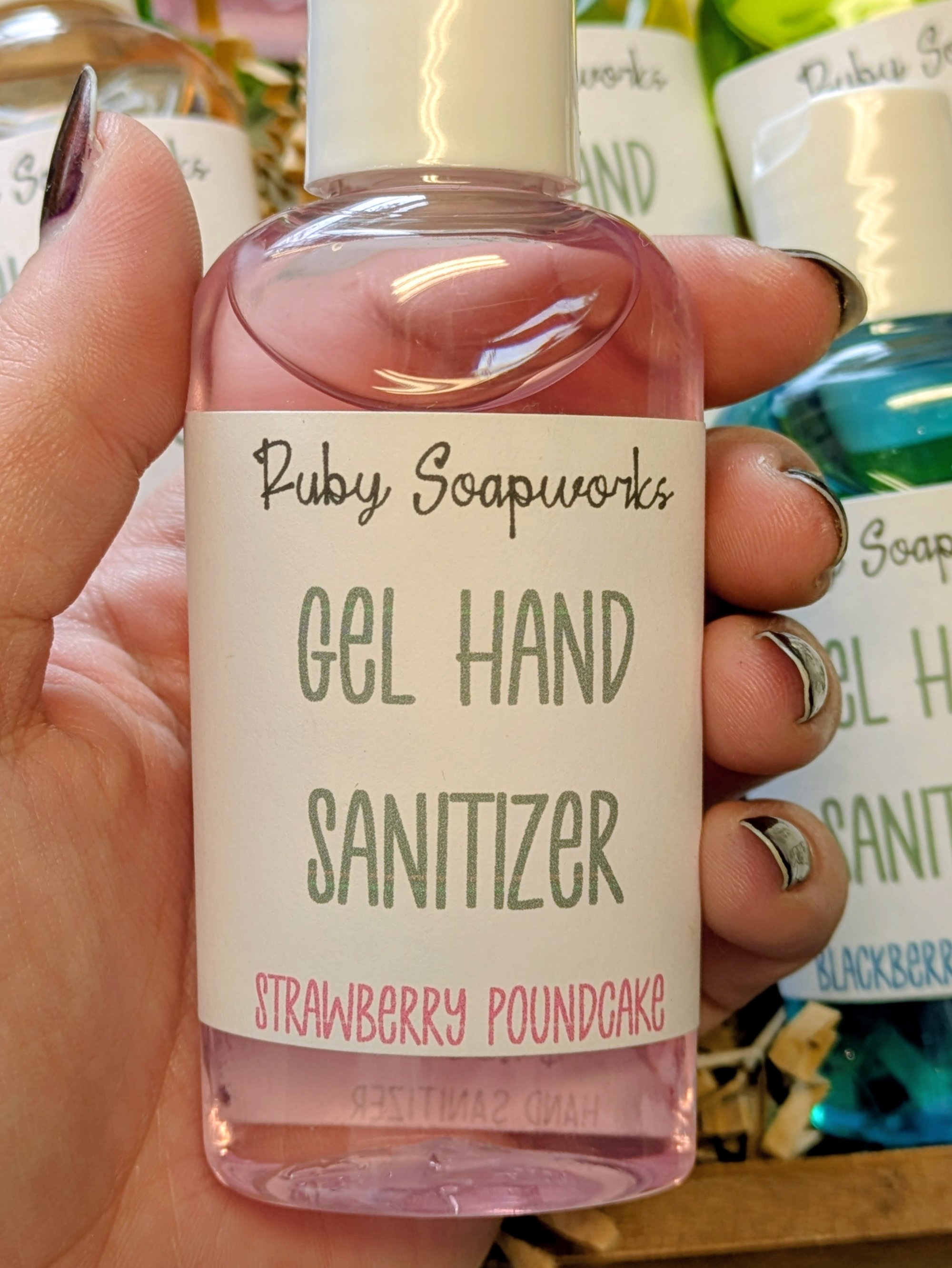 A 2oz bottle of thickened gel hand sanitizer in a variety of scents. Perfect for keeping in your bag or car, with added aloe to prevent dryness while still killing germs. Simply apply a small amount to your hands, rub them to coat, and allow to dry! As the alcohol does its work and evaporates off, the scent will be left behind on your hands.