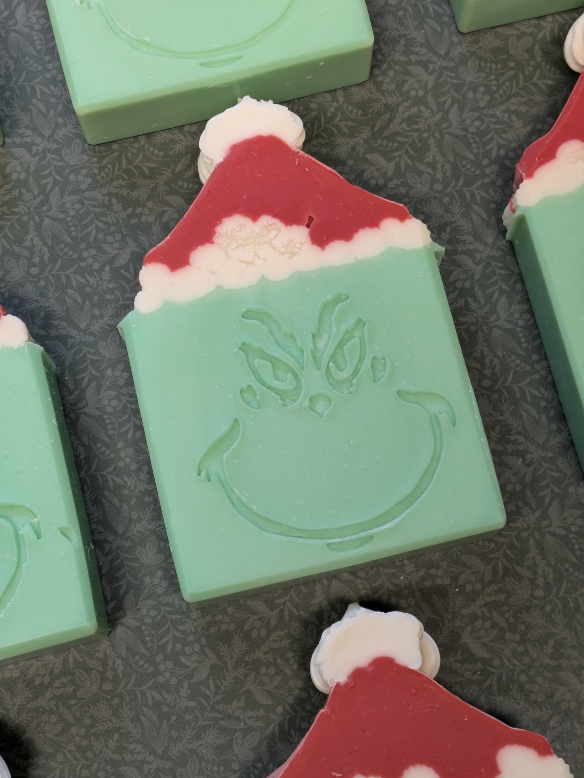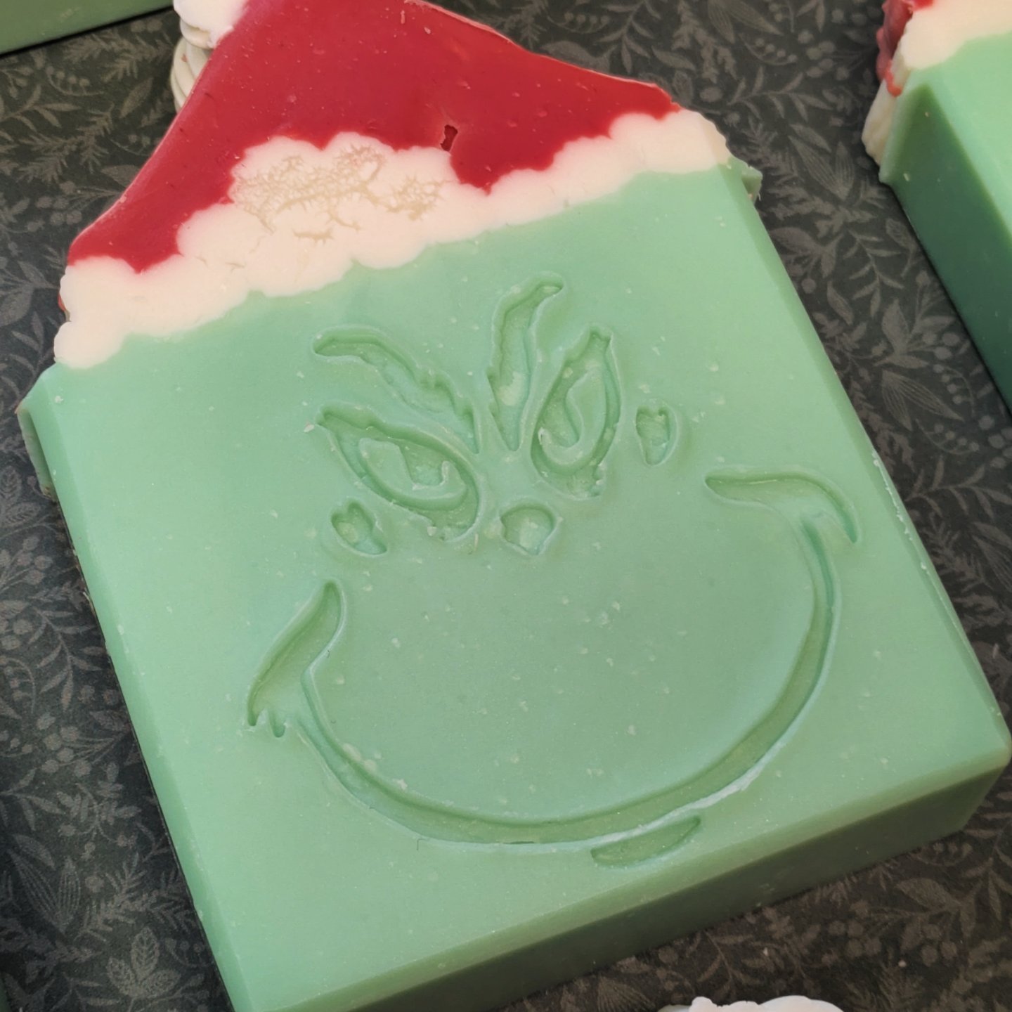 A bar of grinchy green soap scented in Lemon-lime Fizz.